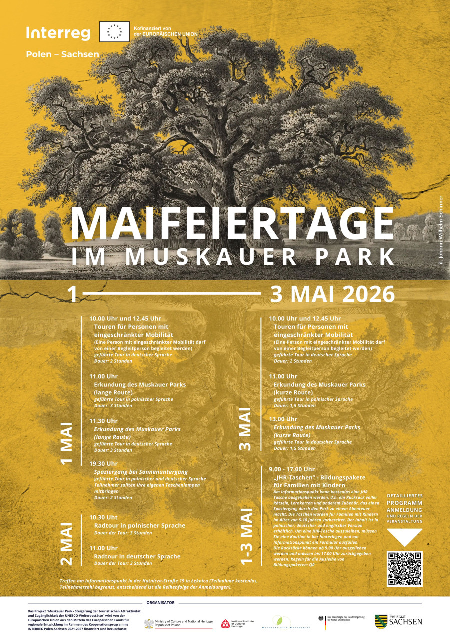 Am Maiwochenende erwartet die Besucher ein Programm aus geführten Parkspaziergängen, Radtouren sowie eine Exkursion für Familien. Anmeldungen sind erwünscht und über den Link oder QR-Code möglich.